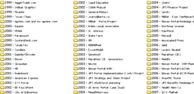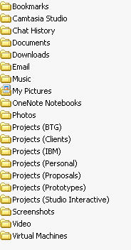 This is a problem every one struggles with: what is the best file structure for old files? The problem is actually compounded by the need to do routine back-ups. As I was going through all my old hard drives as part of my email project to upload all my email into Gmail. I took note of the various ways I organized my files over the years, the various folder structures I adopted. My digital life is dominated by projects - personal projects (most half-baked and half-finished), client projects (with thousands of files each with multiple versions), and team projects (like personal projects only with multiple people). Then, like everyone, I have downloaded files (in the form of mp3s, images, videos, and saved web pages), personal photos, and miscellaneous documents.